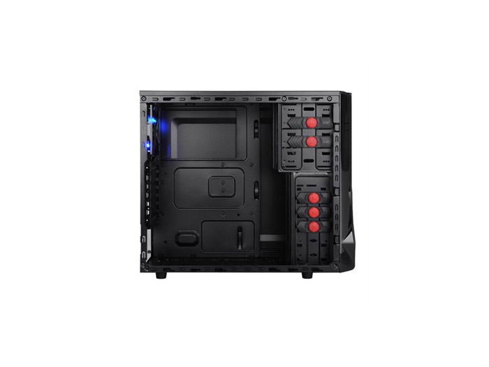- 機殼內外部全黑烤漆,搭配鐵網面板設計,加強通風效果
