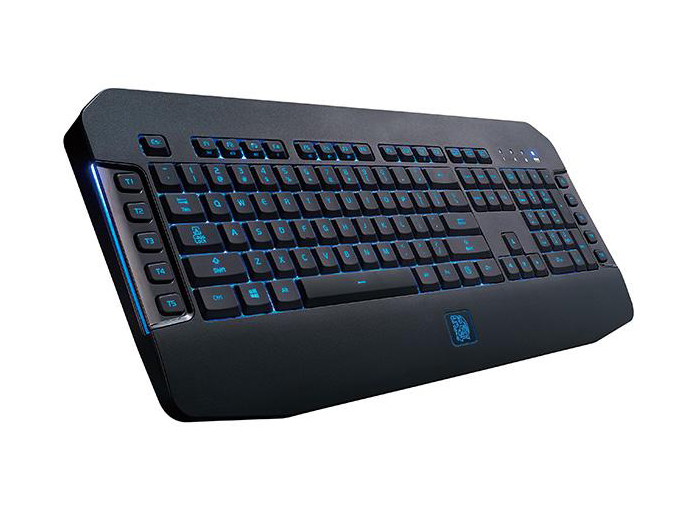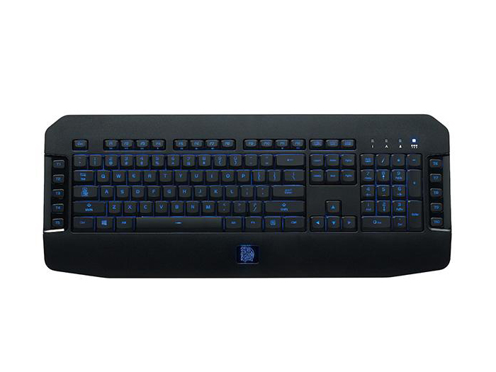 五段自訂義藍色LED全背光模式可透過[Fn + F11]的切換來選喜好亮度,另外偏好呼吸式背光模式的玩家也可選擇此模式,外加固定扶手護腕上的鬥龍圖騰則是電競王者標誌