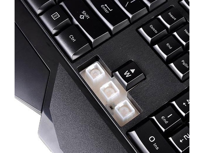 九顆多媒體影音複合熱鍵中,更貼心置入的快捷鍵(Home鍵、email收發鍵、My Computer鍵),此外,F5的計算機快捷鍵也是文書上使用的好幫手;再者,遊戲使用時也可直接作【一般模式】與【戰鬥模式】的快捷切換進而決定巨集功能的啓動與否,著實滿足使用者多方面的需求